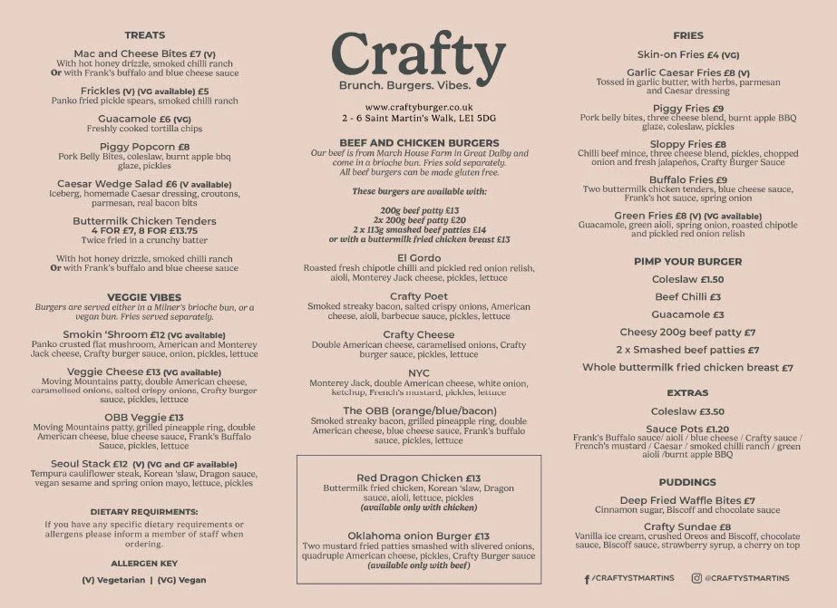 Crafty Burger Menu